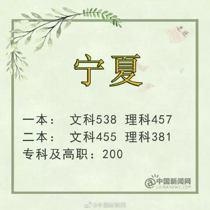 宁夏:一本文科538 一本理科457