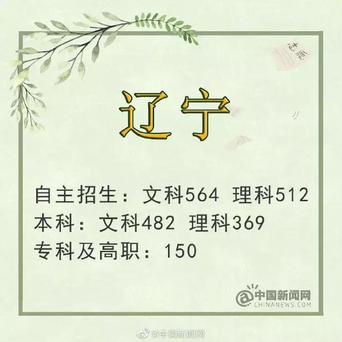 辽宁:文科本科线482分 理科369分