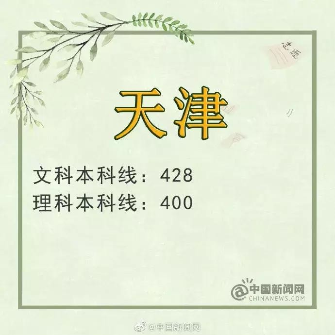 天津:文科本科线428分 理科本科线400分