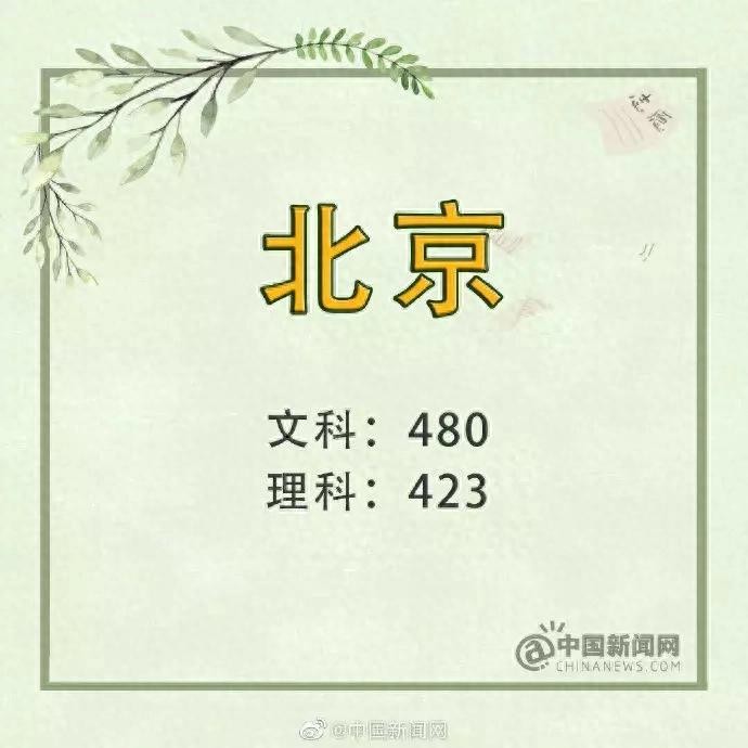 北京本科普通批:文科480分、理科423分