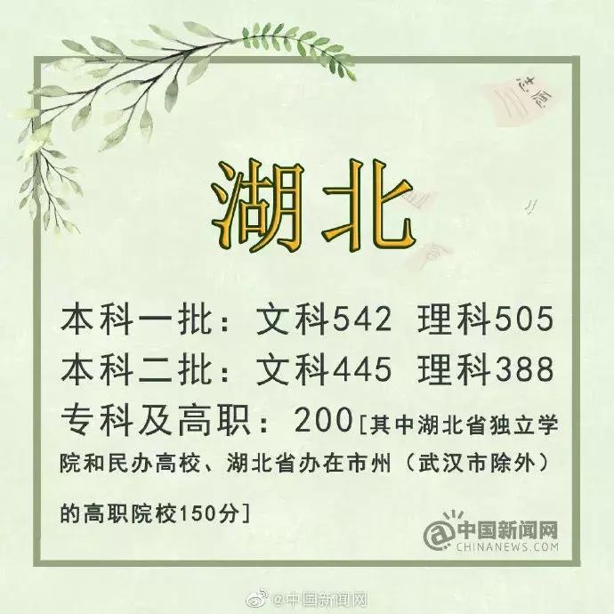 湖北:文史一批542分 理工一批505分