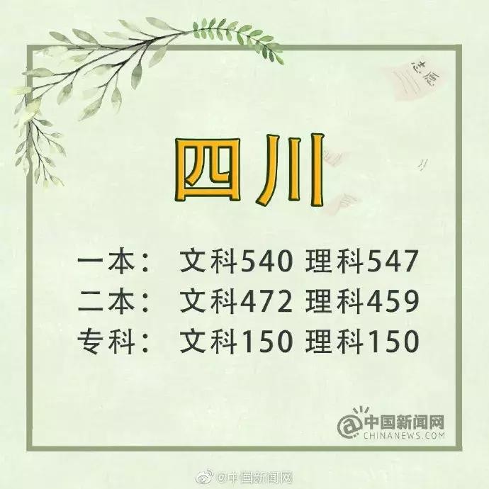 四川:文科一本540分 理科一本547分