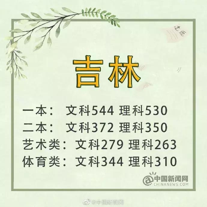 吉林:一本文科544分 一本理科530分