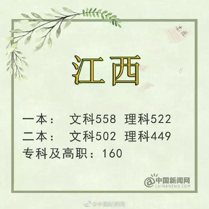 江西:一本文科558分 理科522分