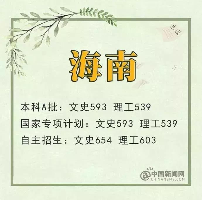 海南:本科A批文科593分 理科539分