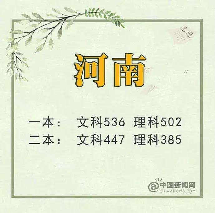 河南:文科一本536分 理科一本502分