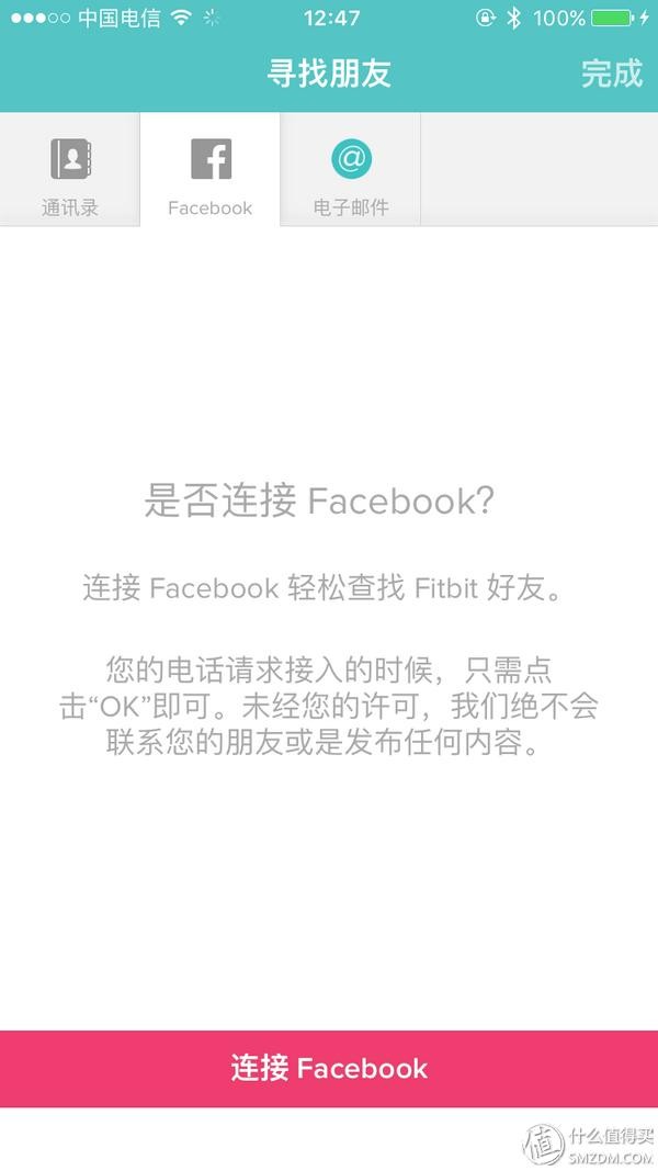 “挑战”和“朋友”这两个菜单,对我来说就是个摆设,为什么呢? 因为这个APP根本加不了朋友(或者说,能加的朋友非常少)!!! 它支持的互动很有限,添加朋友,只能是“通讯录”、“facebook”、还有就是电子邮件。 以目前国内的情况,身边用这个牌子手环的人特别少,我的朋友里面没有一个是的(我又不想加陌生人),用通讯录或电子邮件都没用。Facebook就更不用说了,呵呵。如果没有朋友,那么挑战你也是无法进行的,也就是说,你用这个手环,根本无法互动。 无法转发微信朋友圈,无法转发微信,什么都做不了。嗯,你只能是孤独的。