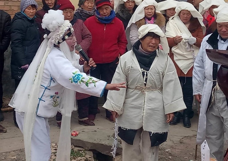 这位特殊的白衣女子就是职业哭丧人,她每年要哭丧70多场,每场都要像上述情景中一样持续两三个小时,还要磕头五六百次。