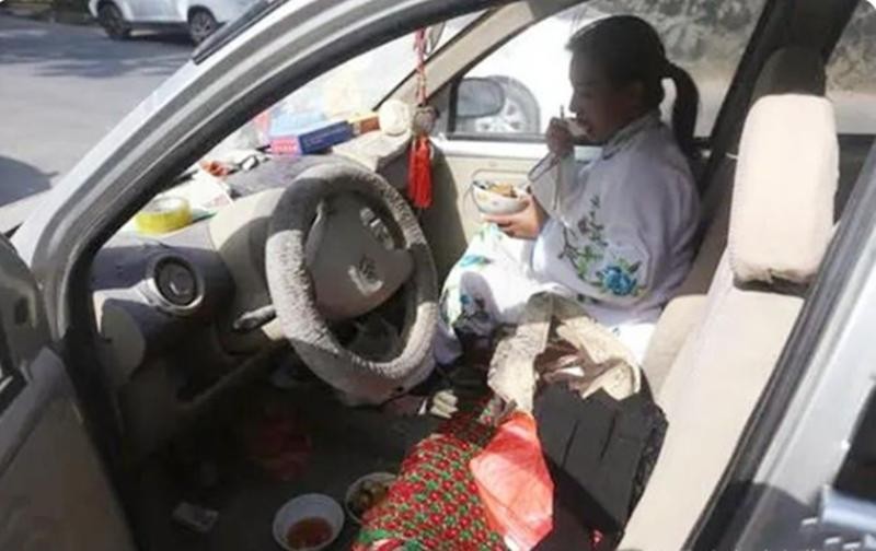 她们还专门买了一个面包车,面包车上放着所有她们哭丧仪式中需要用到的道具服装等东西。