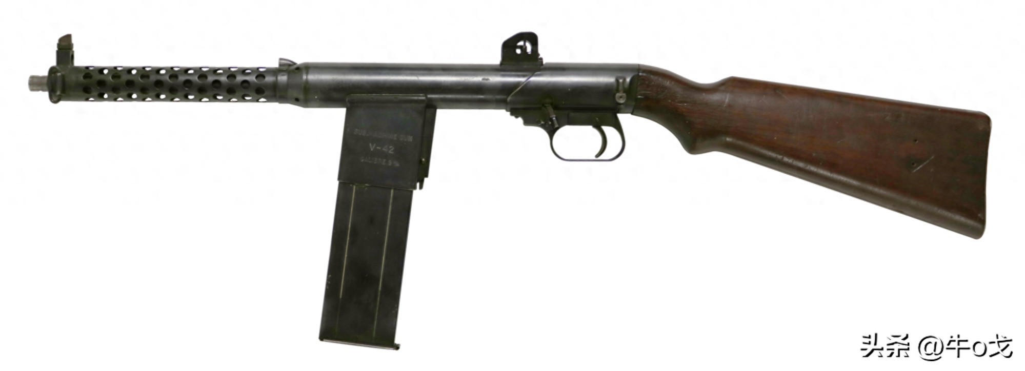 V-42冲锋枪的研发并不是战后,顾名思义,该枪是早在战时的1942年就申请了专利,只是因为要打仗,英国人没空大规模换装,这枪是到了1947年才进行测试的。