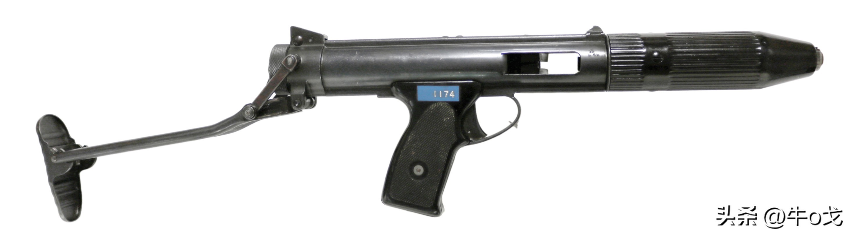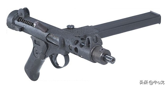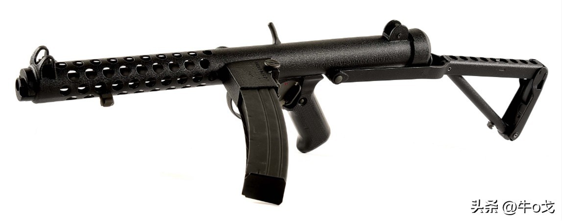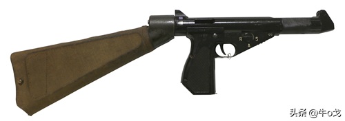 和斯登不一样,该枪使用可折叠的钢骨枪托。