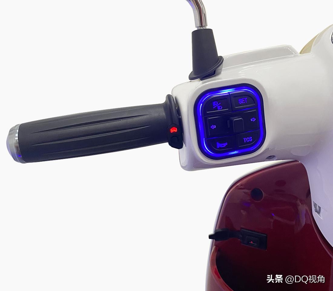 而除了这些电控及配置之外,它在制动方面使用了前后碟刹 +半热熔轮胎的组合,而且还贴心带有胎压监测功能,可以在仪表盘上面进行实时监控,这对于日常骑行而言,能够有效避免因胎压问题造成的一些小事故。同时为了降低在光线不足的地方其他行人和车辆的辨别,它在车身上面增加了辅助灯,即便是侧面来车来人也能起到一定警示作用。