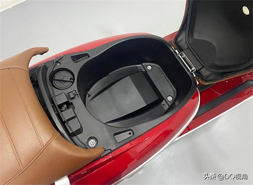 虽然是一辆复古150踏板,但搭配了5英寸全彩竖屏仪表和行车记录仪,除了常规的信息显示之外,也同样支持通过手机投屏来实现导航、电话及歌曲播放,至于手机app查看车辆信息也同样都有;而且难能可贵的是,它在前储物盒边上有一个双口的USB快充接口;要知道同类型的一些复古踏板,前面的储物箱一般是封闭式的。