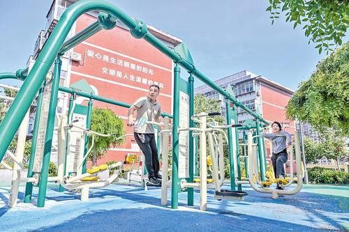 日前,邯郸市复兴区阳光里棉三小区居民在健身活动区锻炼。河北日报记者 田明摄